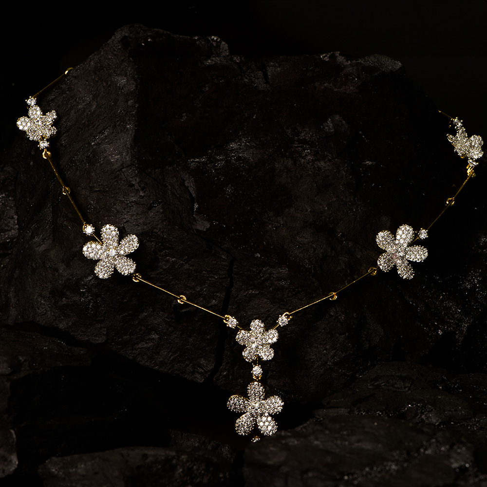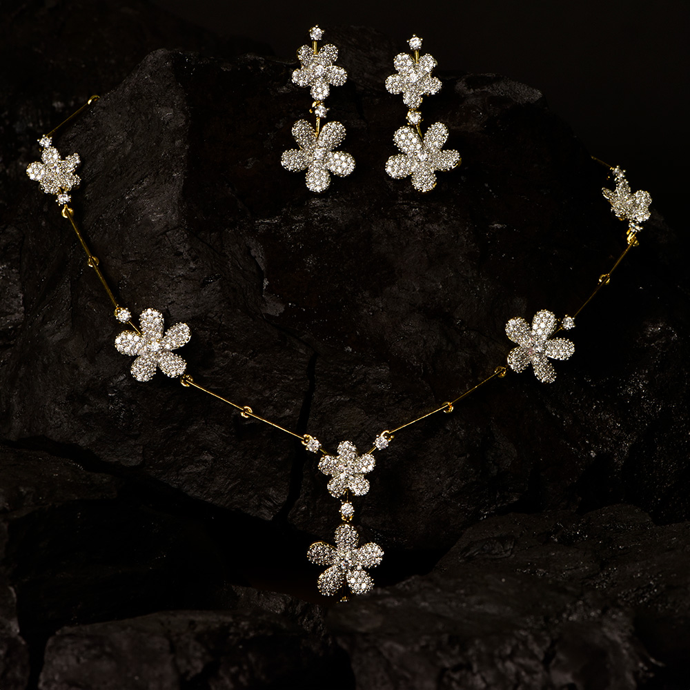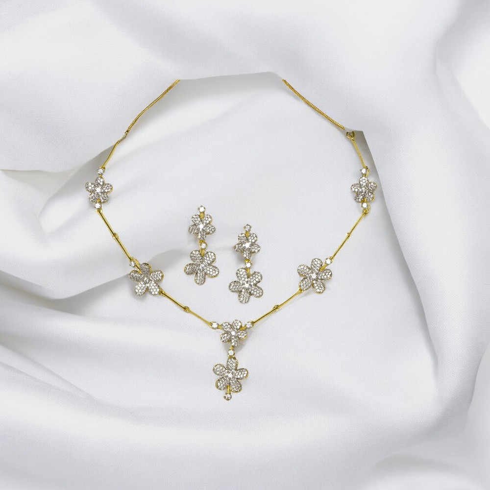 Sharleez Light Weight Minimalist Floral Shaped AD Necklace