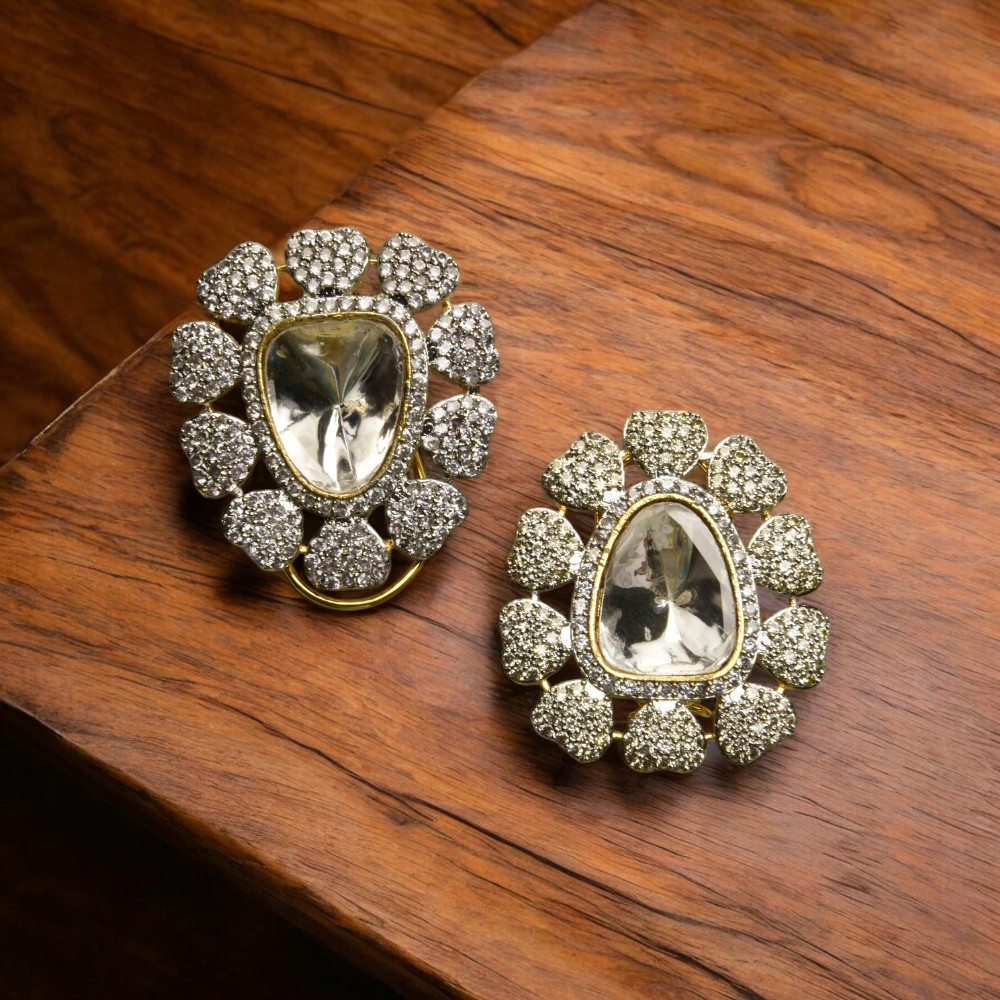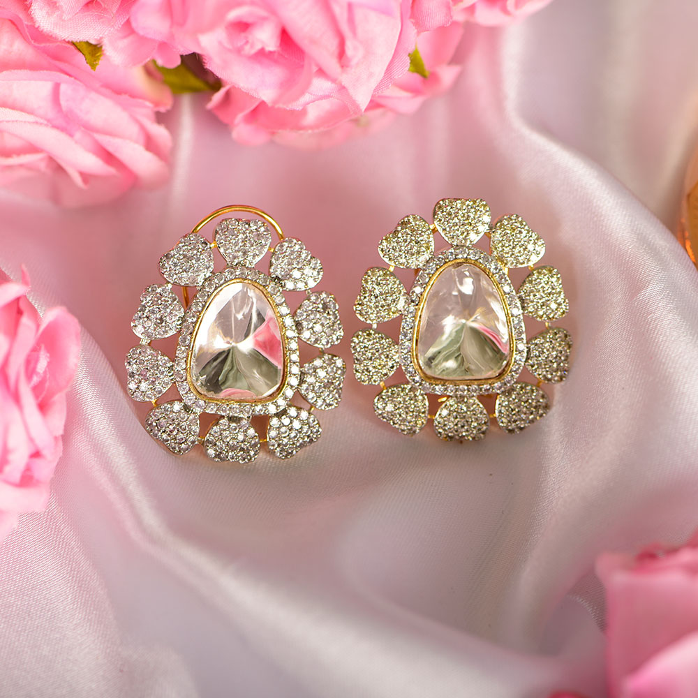 Sharleez Real Kundan Stud Earrings with AD Embellishments