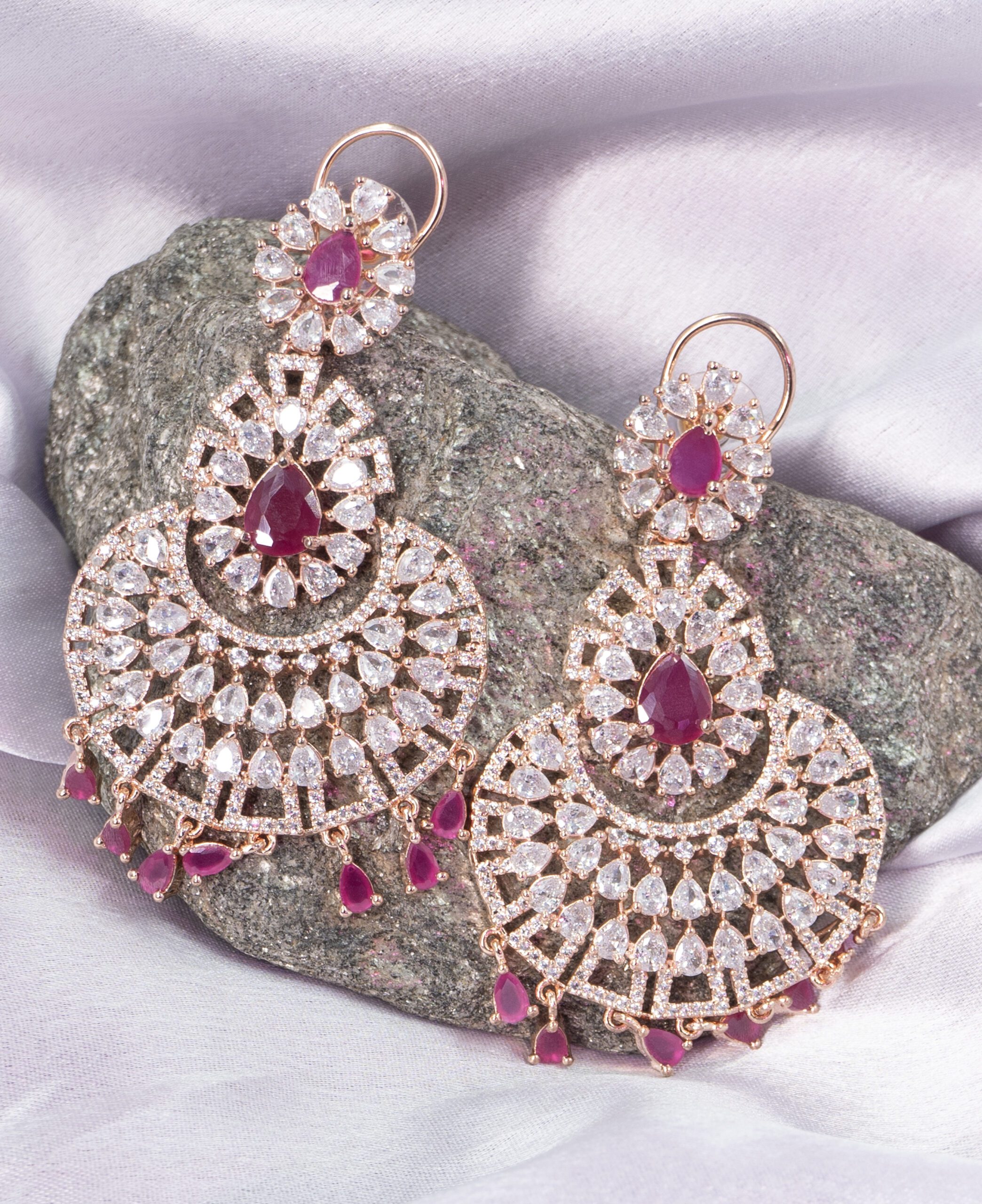 - Unique Design: Stand out with our exclusive chandbali earrings adorned with bold red teardrop stones, perfect for making a statement.